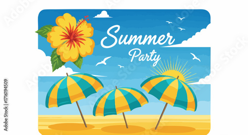 Sunscreen packaging tubes, paper cut exotic beach background, parasol, flip flops, glasses in round frame, vector illustration. Sunburn protection cream, summer beauty cosmetic product ads template.