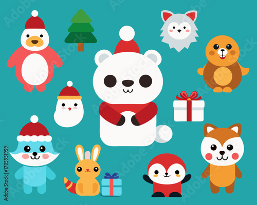 Superhero animals. Vector illustration isolated on white background. Cute little raccoon, rabbit, bear, owl, fox, squirrel and hedgehog in super hero costumes