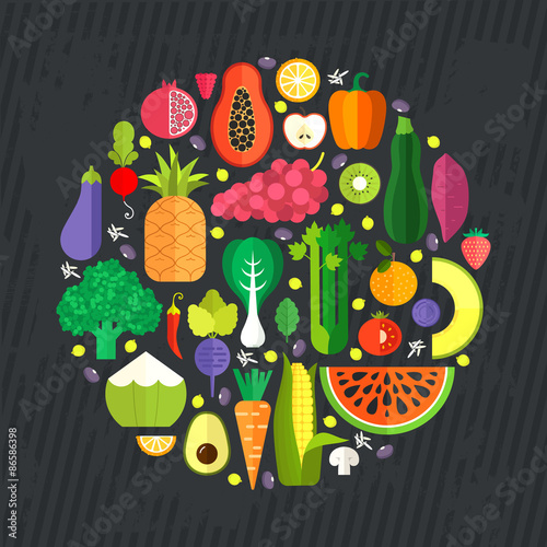 Supermarket shopping basket full of vegetables and fruits, vector illustration in paper art style. Fresh vegetables poster, banner design template.