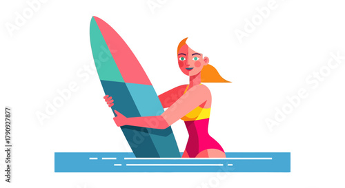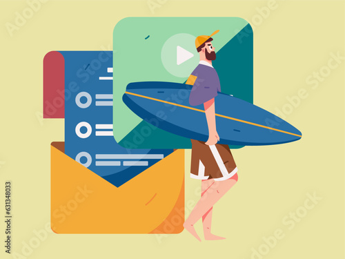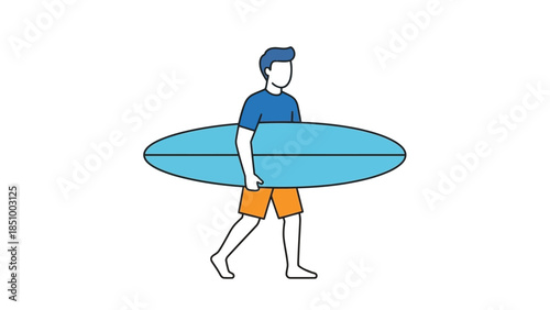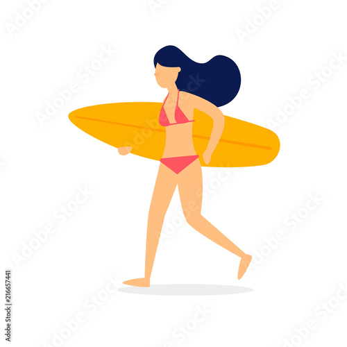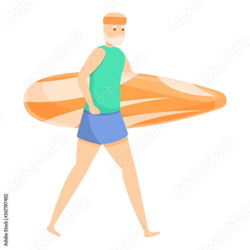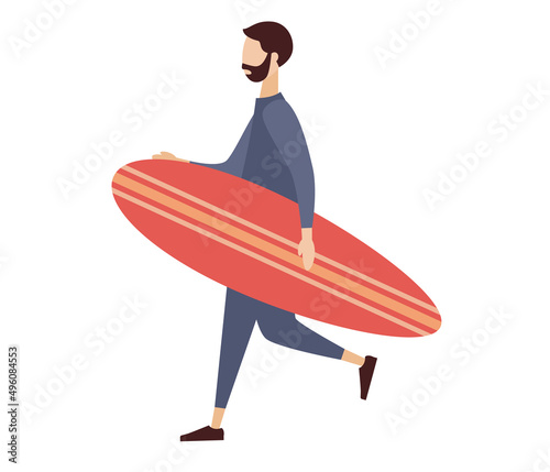 Vector illustration of surfer carrying surfboard. Summer people concept flat style design element, icon isolated on white background.
