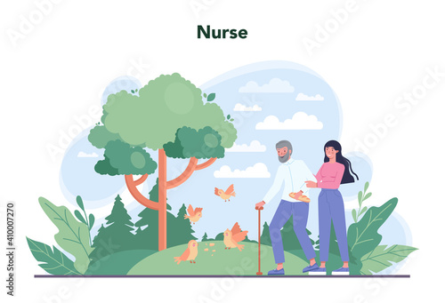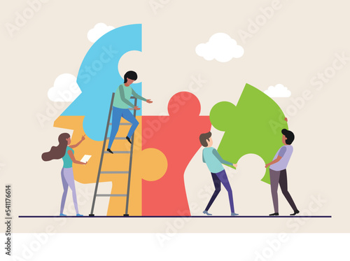 Vector illustration of happy girl covering boyfriend eyes with her hands. Surprise concept flat style design element.