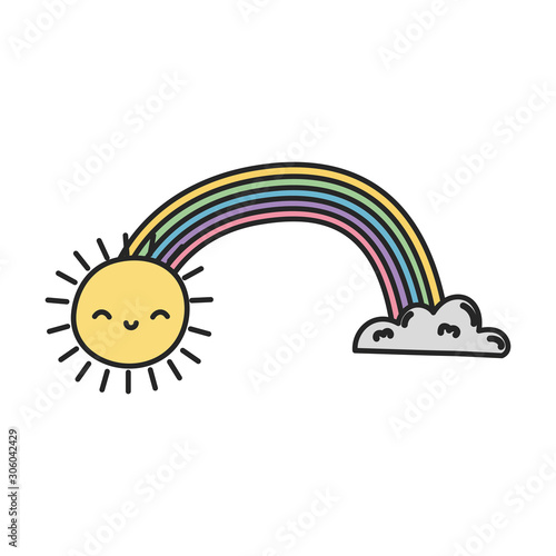 Sushi nigiri food caricature vector. Japan cute taste character kawaii sashimi with rice and salmon isolated on white background