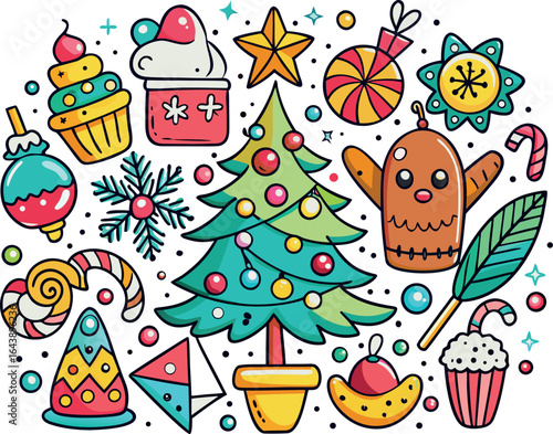 Sweet candy icon set. Vector illustration isolated on white background. Sweets, lollipops, candy canes, sweet houses.