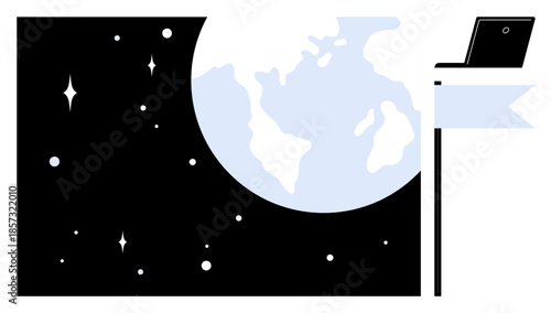 Sweet dreams concept vector realistic illustration. White bed with two white pillows, blanket and linen on moonlit sky background. Soft comfy bed ad design template.