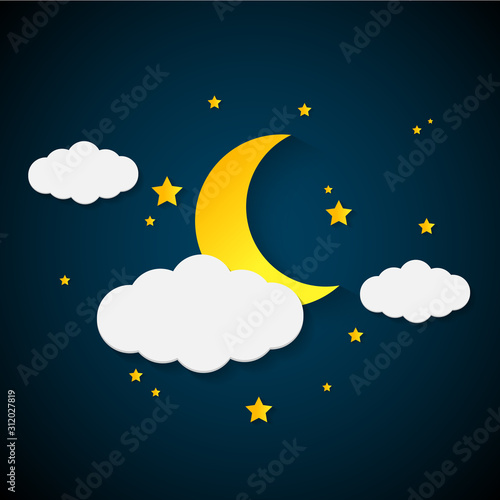 Vector layered paper cut style cute teddy bear sleeping on crescent moon, good night lettering. Creative beautiful sweet dreams composition for card, banner, flyer, poster etc.