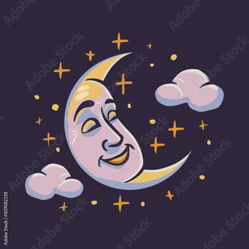 Vector layered paper cut style starry night sky with Great Bear constellation, crescent moon and portrait of beautiful woman with closed eyes. Sweet dreams concept for card, banner, flyer, poster etc.