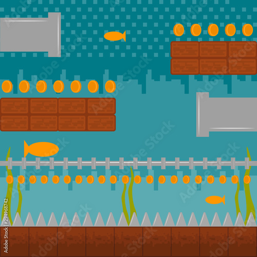 Vector illustration of swimming pool and people male and female doing water sports. Diving, synchronized swimming, water polo concept design elements in flat style.