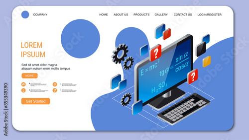 System and network administration landing page website template. Vector illustration of IT professionals, engineers. Server maintenance, network management, computer systems administration.