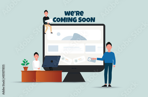 System administrators updating operation system, flat vector illustration. Software installation, computer system upgrade or maintenance.