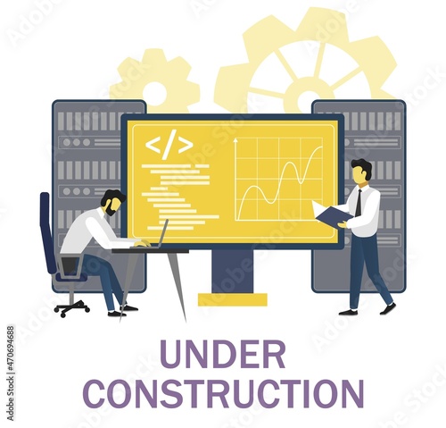 System administrators updating operation system, flat vector illustration. Software installation, computer system upgrade or maintenance.