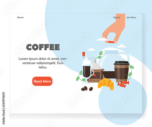 Tailoring vector website template, web page and landing page design for website and mobile site development. Sewing machine, dummy, thimble, pins, pincushion, thread, iron, tape measure.