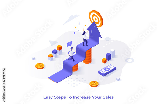 Target media, landing page design, website banner template, flat vector isometric illustration. Digital advertising campaign.