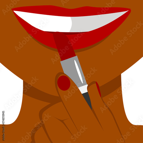 Tattoo championship emblem, logo, vector illustration. Realistic gold trophy cup, two red crossed tattoo machines and ribbon composition for tattoo artists competition, body art event.