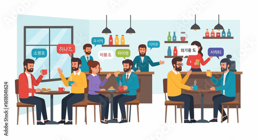Vector illustration of professional tattoo artist making tattoo, client choosing tattoo sketch. Tattoo parlor concept flat style design elements.