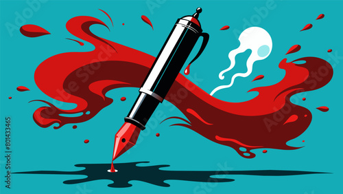 Tattoo studio label, emblem, logo vector template. Two red crossed tattoo machines, ink bottle, ribbon, fire on black background. T-shirt graphics.