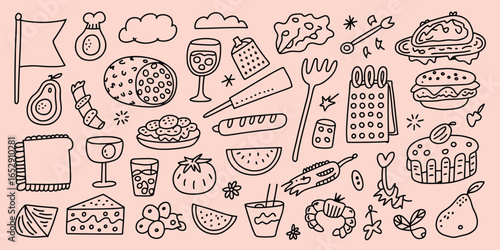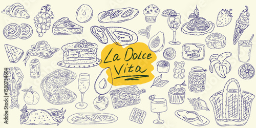 Tea ceremony equipment set vector illustration. Traditional japanese and chinese tea utensils and accessories, teapot, ceramic cup, spoon. Hand drawn banner and poster.