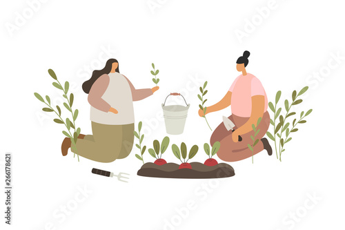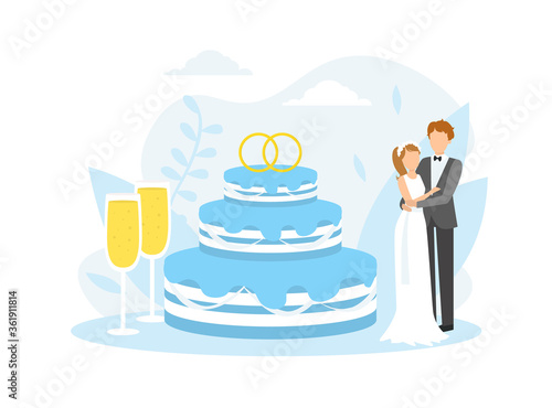 Huge teapot, micro male and female characters preparing tasty hot tea with lemon and cupcake, vector flat style design illustration. Teahouse, cafe, tea party composition.
