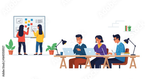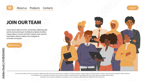 Team and coworking landing page vector template. Teamwork and brainstorming, strategic partnership crowdfunding for business success illustration. Workflow management website layout