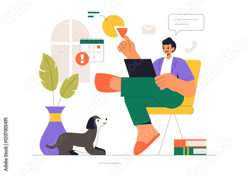 Huge mobile phone with message bubbles, business team micro male and female characters using laptop, tablet, vector illustration. Teamwork concept for web banner, website page etc.