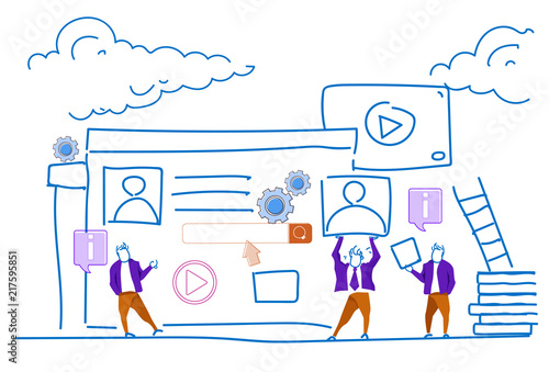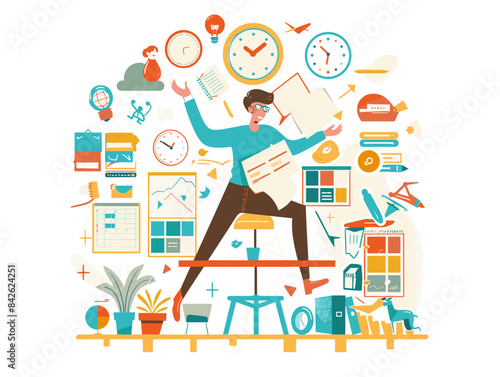 Tech worker installs 5G antenna to cellular network tower. 5G technology concept vector illustration. Fast wireless internet around city.