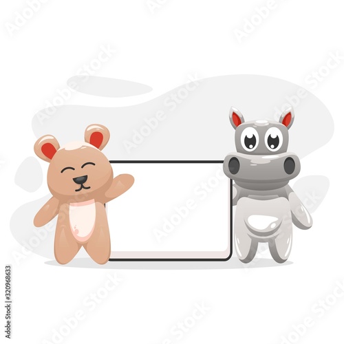 Teddy-bear and fox toys on shelf vector icon isolated on white background
