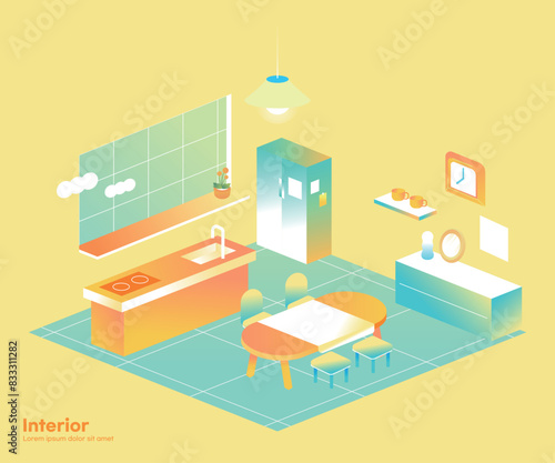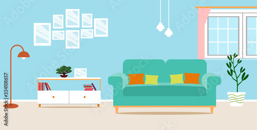 Teenager bedroom interior objects in flat style. Vector illustration. House room design elements and icons.