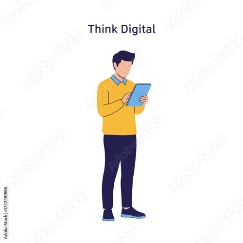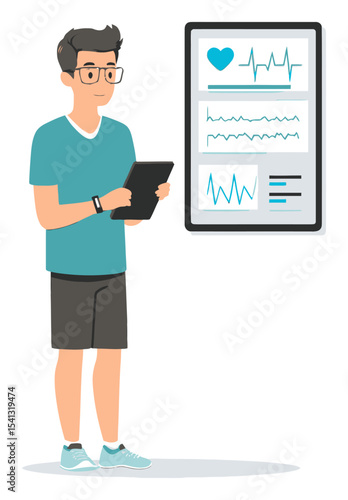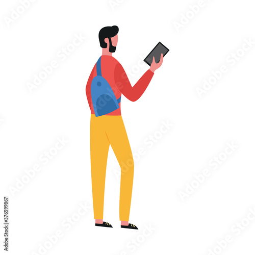 Teenager boy shooting excursion on mobile camera vector icon isolated on white background