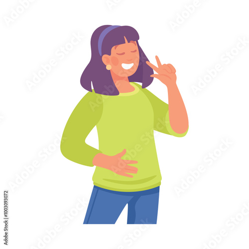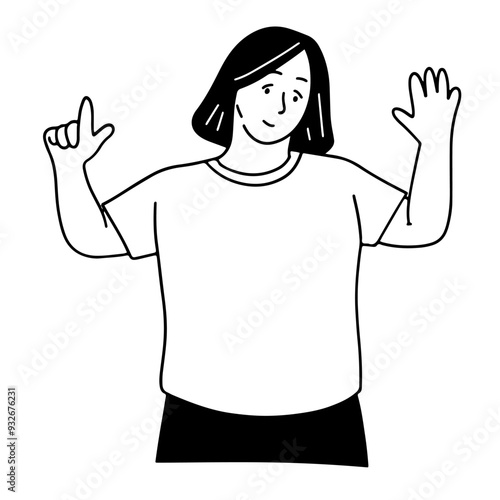 Teenager girl with double thumbsup showing consent gesture vector icon isolated on white background