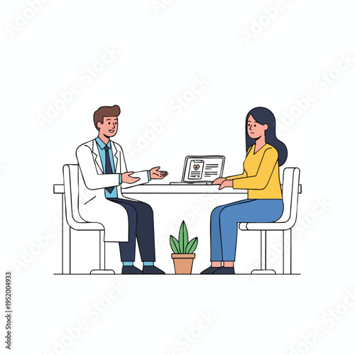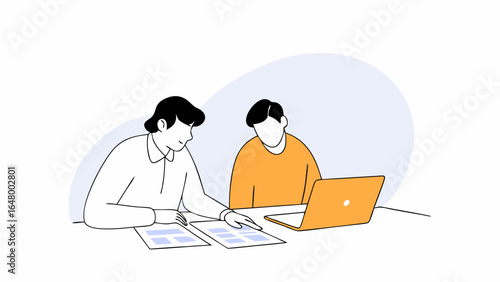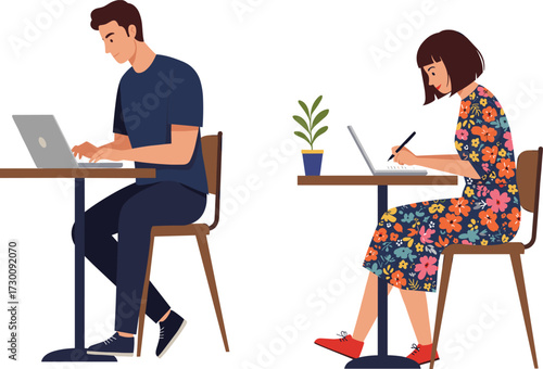 Teenager student enjoying homeschooling sitting at table front of computer having online lesson vector icon isolated on white background