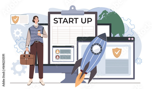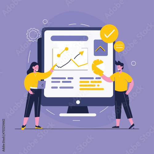 Huge tennis scoreboard and micro male characters players competitors playing game, vector illustration. Tennis championship, tournament concept for web banner, website page etc.