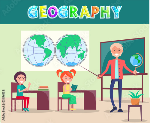 Vector illustration of scientists males demonstrating test results. Scientific laboratory interior, equipment and lab glassware. Flat style design.