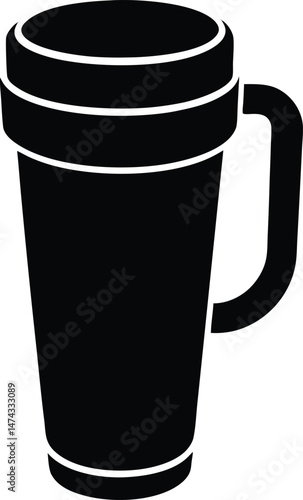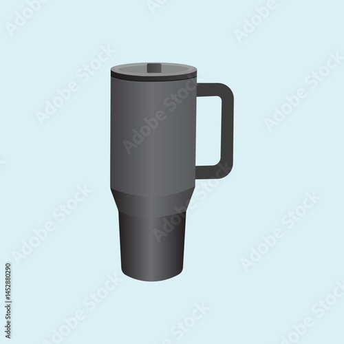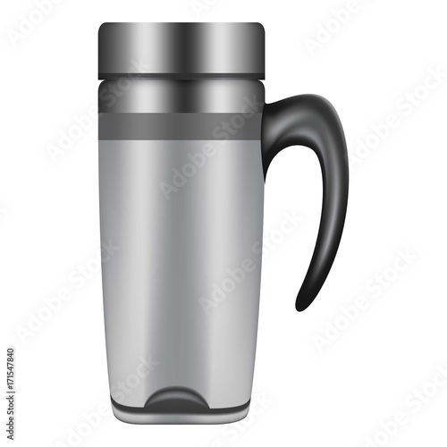 Thermo mug icon. Cup realistic vector mockup. Metal stainless steel sport pack for drink, thermal reusable travel container