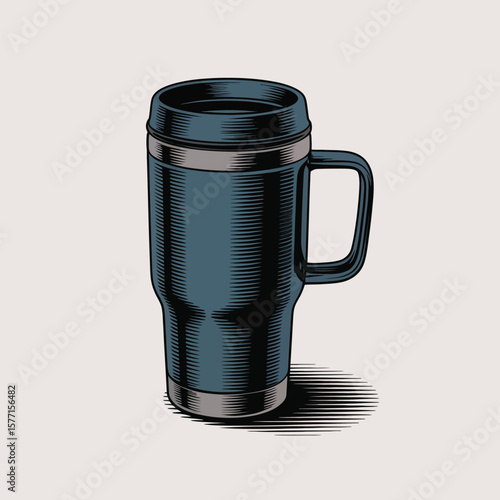 Thermos thermo cup travel mug mockup set. Vector realistic illustration isolated on transparent background.