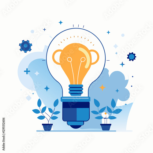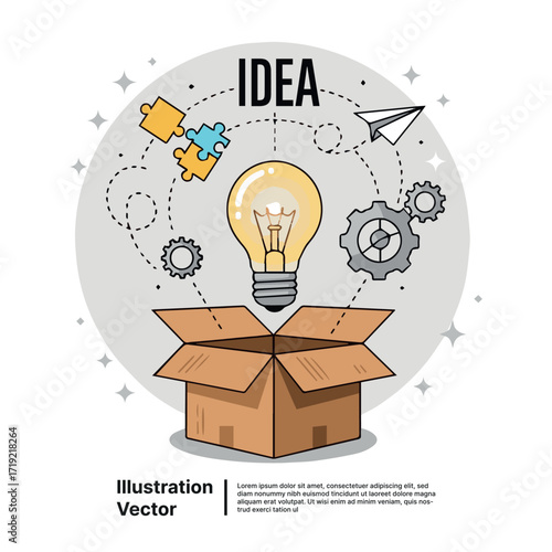 Thinking out of the box concept background. Lightbulb showing up from cardboard packing and symbolizing new creative idea. Vector illustration in flat style design.