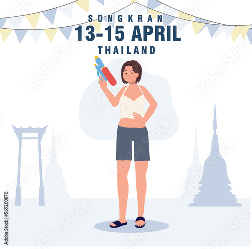 Thirsty young woman sunburn while walking on city street during hot summer weather flat cartoon vector illustration. Girl suffering from uv sunrays having damaged skin