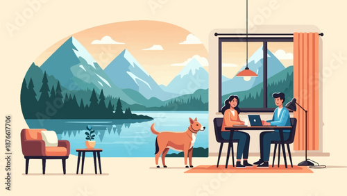 Three girls taking selfie in a bar. Female friends meet at a table in restaurant. Vector web site design template. Landing page website concept illustration.