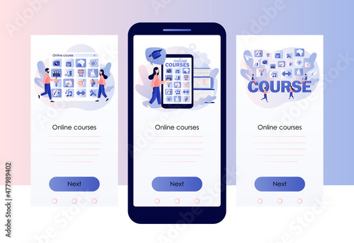 Airplane, bus and train tickets mobile app onboarding screens. Menu banner vector template for website and application development. Online reservation and purchase tickets.