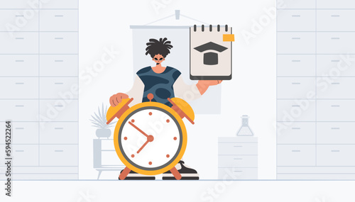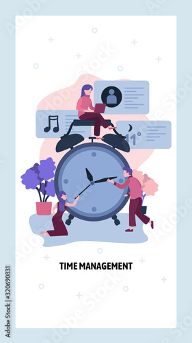Time management concept. Business team set the clock. Deadline, time break and schedule. Vector web site design template. Landing page website concept illustration.