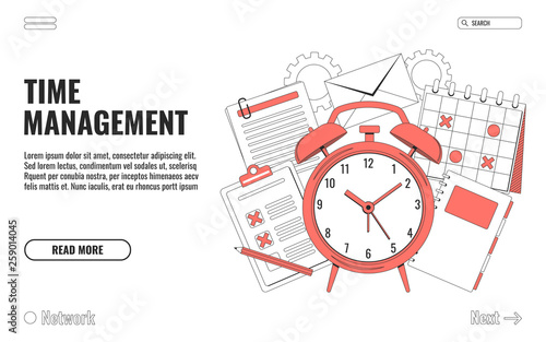 Time management vector website template, web page and landing page design for website and mobile site development. Time planning, effective scheduling concept.
