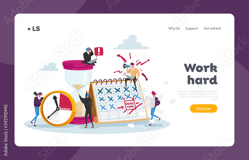Time to burger vector website template, web page and landing page design for website and mobile site development. Micro male and female characters eating fast food burger, french fries, drinking soda.