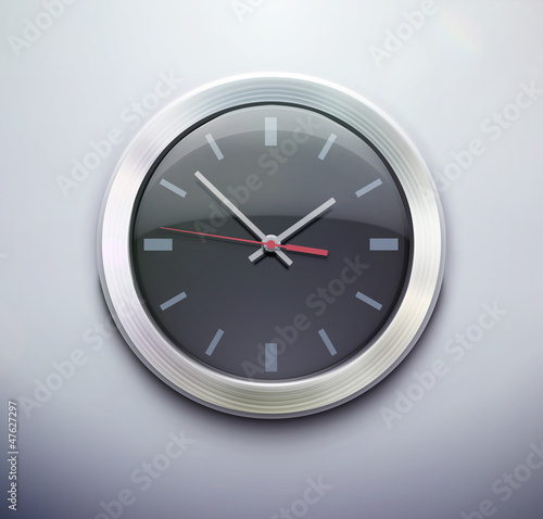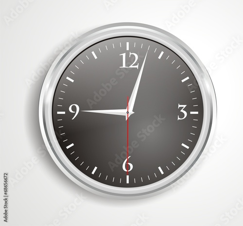 Time to drink coffee vector poster, banner design template. Cup of coffee with clock on saucer, top view illustration. Coffee break.