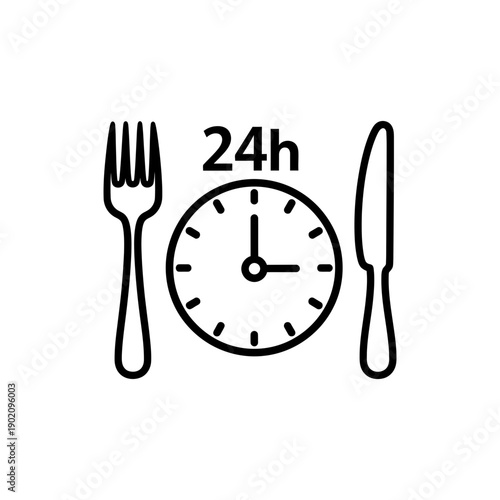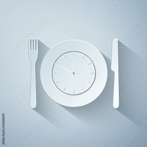 Time to have lunch vector poster, banner design template. Plate with clock, fork and knife, cup of coffee, top view illustration. Lunch time.