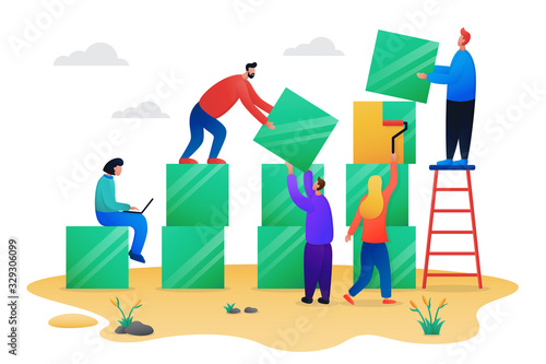 Tiny people using antibacterial soap, hand sanitizers, disinfectant fogger sprayer for fighting coronavirus, vector flat illustration. Cleaning, disinfection, washing hands for coronavirus prevention.