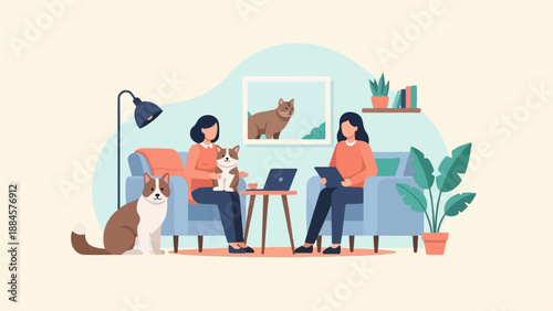 Tired stressed dad sitting in armchair while his son staying next to him with ball and book in hands, flat vector illustration. Parental stress concept.