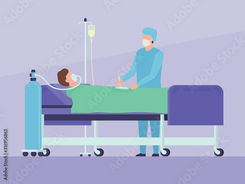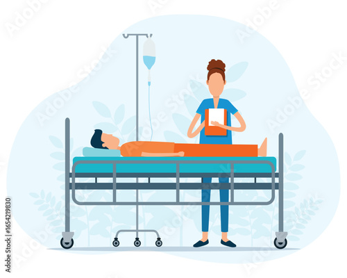 Tired nurse sleeping in hospital couch vector icon isolated on white background