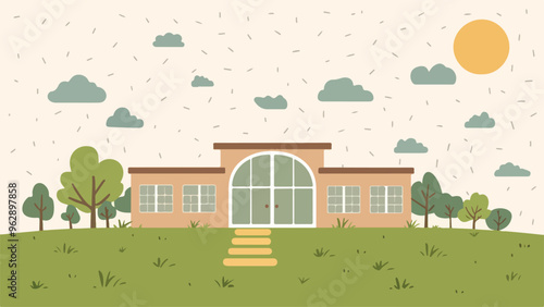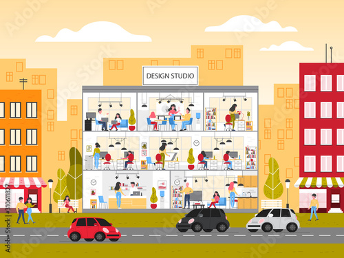 Vector illustration of tourists waving to taxi driver, buying souvenirs at gift shop. Traveling concept flat style design.