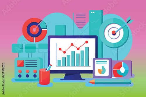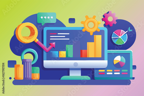 Delivery truck, huge laptop with globe, location pins, cardboard boxes on screen and micro characters, vector flat style design illustration. Online delivery tracking system.