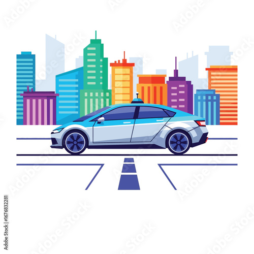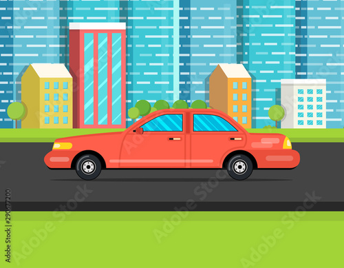 Traffic light concept vector illustration in flat design. Car stopped at the traffic lights.