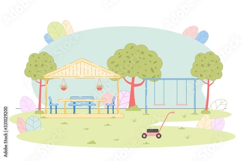 Vector illustration of young women exercising in park. Yoga class. Outdoor workout concept, flat style design.