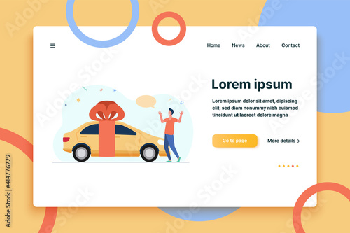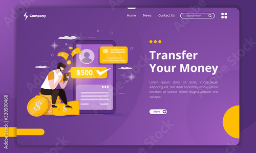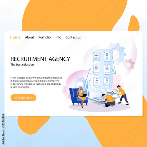 Trash vector website template, web page and landing page design for website and mobile site development. Waste sorting recycling concept with people collecting garbage, different color rubbish bins.